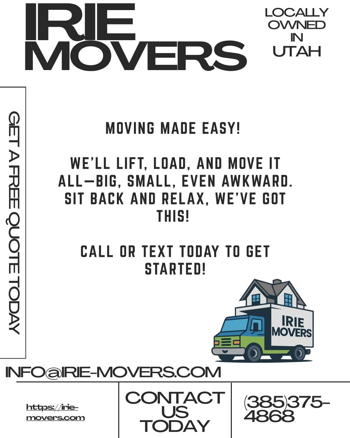 At Irie, we are a professional moving company dedicated to making every move safe, reliable, and affordable. We take pride in delivering exceptional service built on honesty, care, and attention to detail no matter the size of the move. Our experienced team is committed to ensuring a smooth, stress-free experience from start to finish. From packing and unpacking to loading, unloading, and secure storage solutions, we handle every aspect of your move with the highest level of professionalism and respect for your belongings.